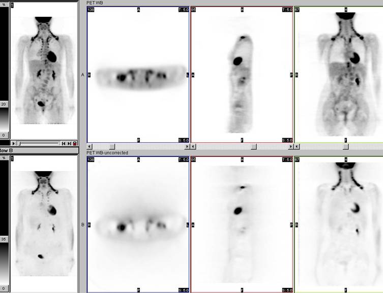 Brown fat activity on attenuation-corrected and non-attenuation-corrected PET data sets