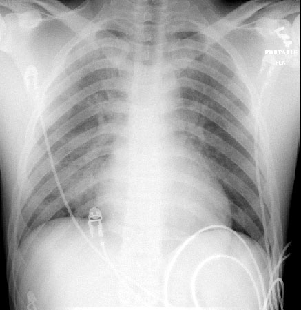 PA of near drowning patient after resuscitation