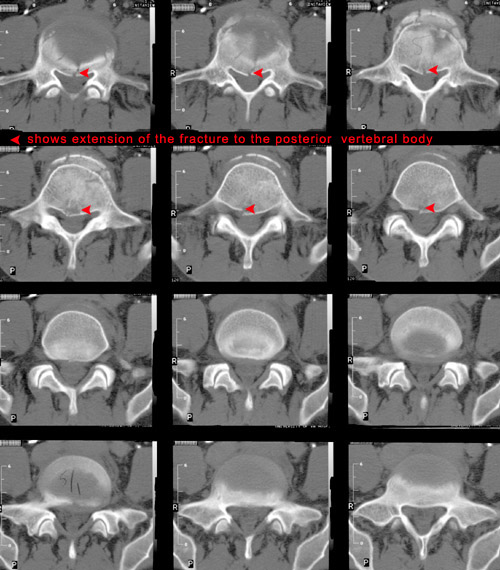 It is important that CT be performed to fully assess the spinal canal. The images below illustrate