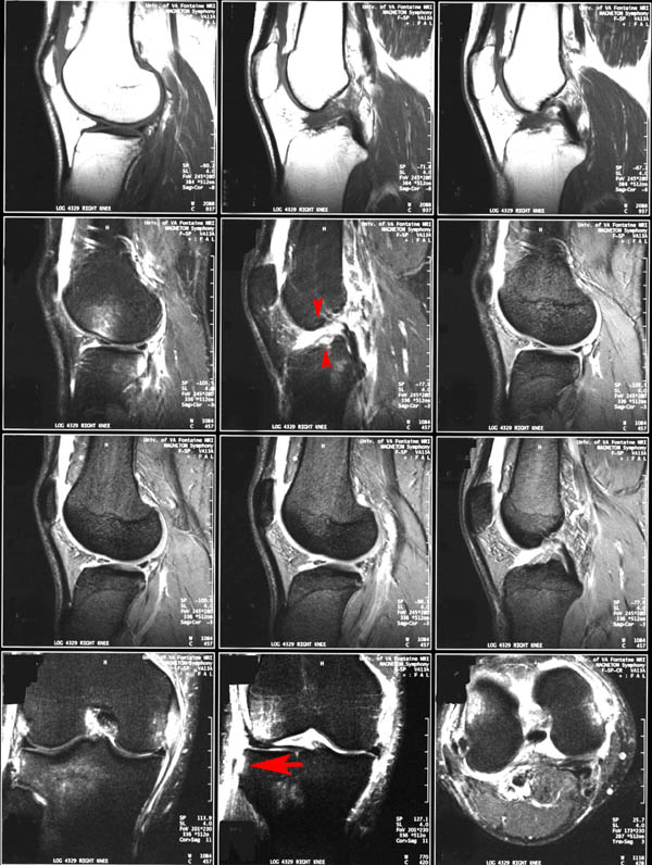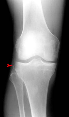 MRI of a segond fracture (arrow) and ACL tear (arrowheads) | |