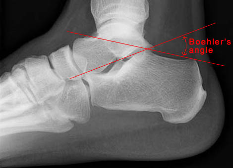 - Boehler's angle is defined as the angle formed by two lines: one drawn tangent to the superior aspect of the