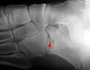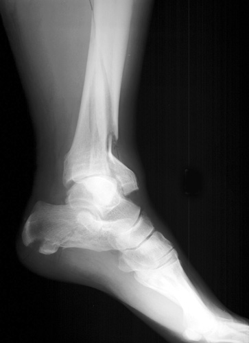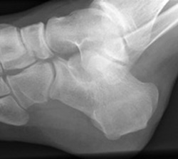 Now look for the calcaneal fracture (and other abnormalities) in the image below.
