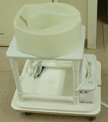 specially constructed commode we use is the Brunswick Chair (E-Z-EM,