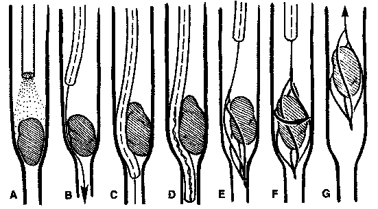 catheter and carefully advanced around the impacted object