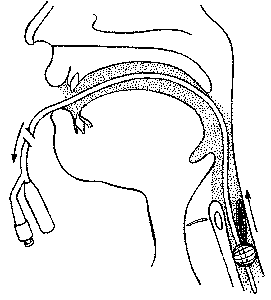 • Moderate resistance to withdrawal of the foreign body and balloon will be encountered at the level of the cricopharyngeal muscle.  At this point, gentle traction for a few moments is usually followed by relaxation of the upper esophageal sphincter and passage of the foreign body.  Significant impedance to withdrawal at any other level should cause the attempt to be terminated.  If the balloon slips past the object, it is reinserted and the procedure is repeated.