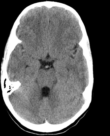 Identify the following structures in the head CT. To view the location of the structure in the image click on the label at the left and an arrow will point to the structure in the image.