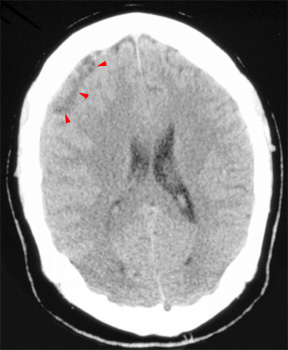 ![]() Notice the heterogeneous subdural fluid collection.