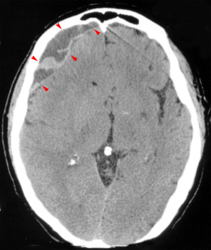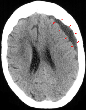 usually uniformly low density but may be loculated. Rebleeding often occurs