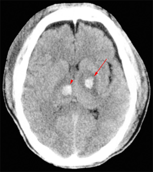 With CT, diffuse axonal injury may appear as ill-defined areas of high