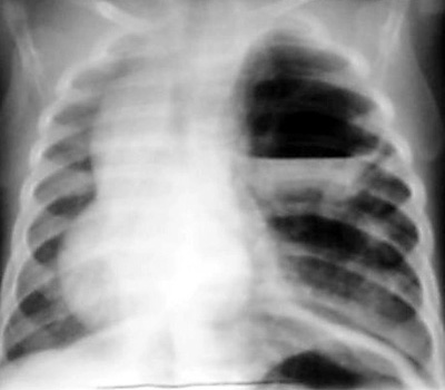 Example of a Type 1 CCAM on CXR with a large dominant cyst