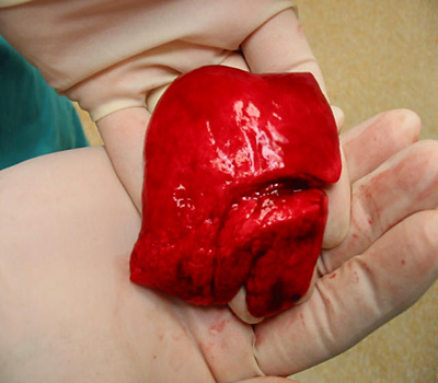 The gross specimen confirms the hyperexpansion of the left upper lobe.