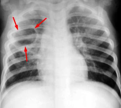 Pneumatoceles are frequent with staphylococcal infections, and they should not be confused with a pulmonary abscess. Pneumatoceles have thin, smooth walls and are seen with an improving clinical picture, whereas pulmonary abscesses have thick, irregular walls with an air fluid level and the child tends to be very ill. Pneumatoceles are thought to be a form of localized pulmonary interstitial emphysema and are self limiting with only the rare case of a large, persisting pneumatocele needing surgery.