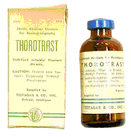 - Thorotrast - a radiographic contrast agent used in the 1930s to 1950s - thorium decay released alpha particles leading to organ damage and neoplasms