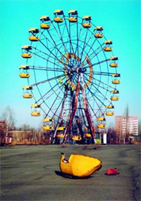 Decaying Ferris wheel in the abandoned town of Pripyat, about 4 km from Chernobyl.
